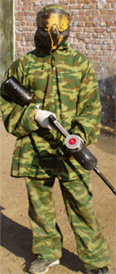 Выходим на улицу. Нас встречают приветливые инструкторы. В первую очередь объясняют, что пейнтбол - это спорт, а не война, поэтому не должно быть никакой агрессии. Лично у меня народ в камуфляжной форме на несколько размеров больше, в странных масках и грязных перчатках совершенно не способен вызвать отрицательных эмоций.