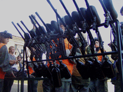 В назначенное время подъезжаю к месту сбора. Первый курс (особенно братья- журналисты), похоже, струсили. Нас было аж три человека! Ну, ничего! Верю в лучшее! Я же местами оптимистка! Главное, чтобы старшекурсники (которые, кстати, бросали очень неоднозначные взгляды) не поставили нас в ряд и не расстреляли! Остальное.. Вот и автобус. Запрыгиваю. Едем в неизвестном направлении. Выходим. Вот мы и на месте. Мама! Какие-то сетки, насыпи, люди в камуфляже, раздолбанные машины… Сразу вспоминаю все триллеры, которые когда-либо видела на экране телевизора. Если меня здесь убьют, то вряд ли мой труп кто-нибудь обнаружит в скором времени! Эй, оптимизм, где ты?! Вспоминаю "5'nizz’y": "Я не боюсь никого, ничего, кроме себя самого. Во!"